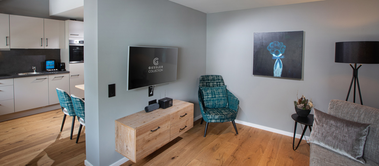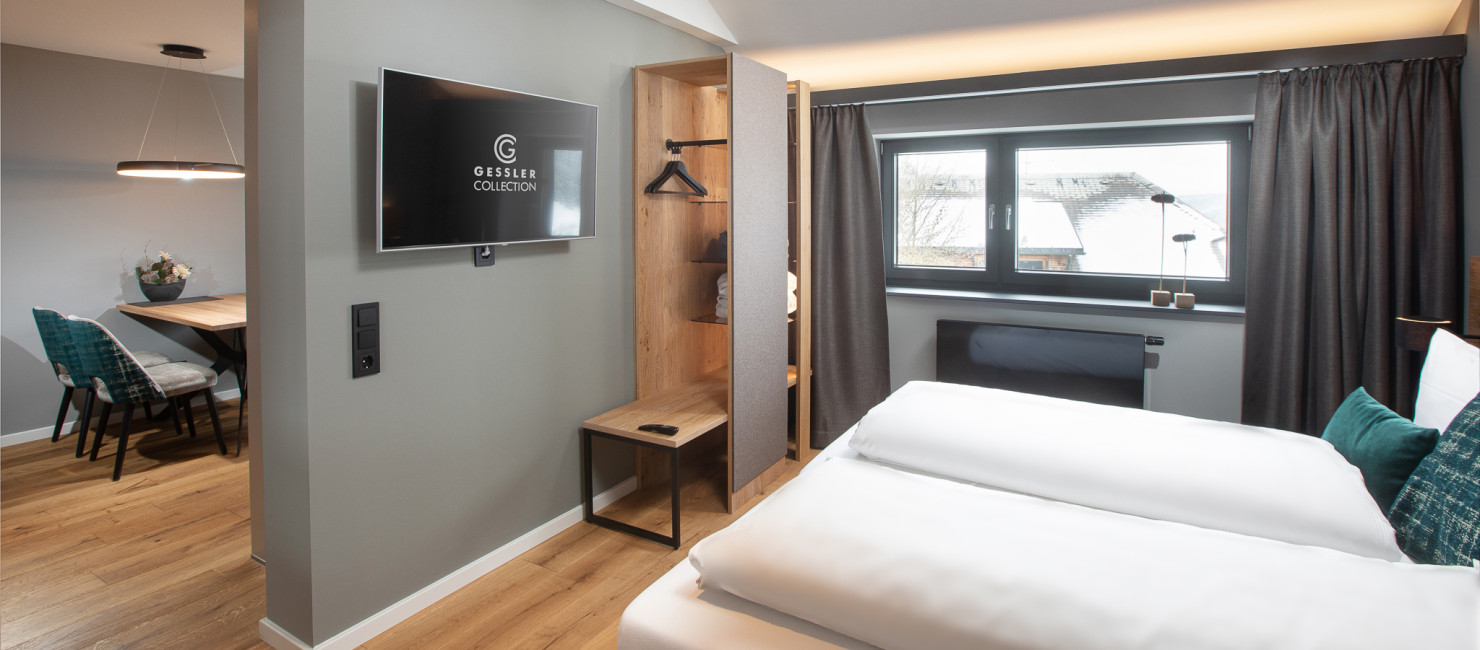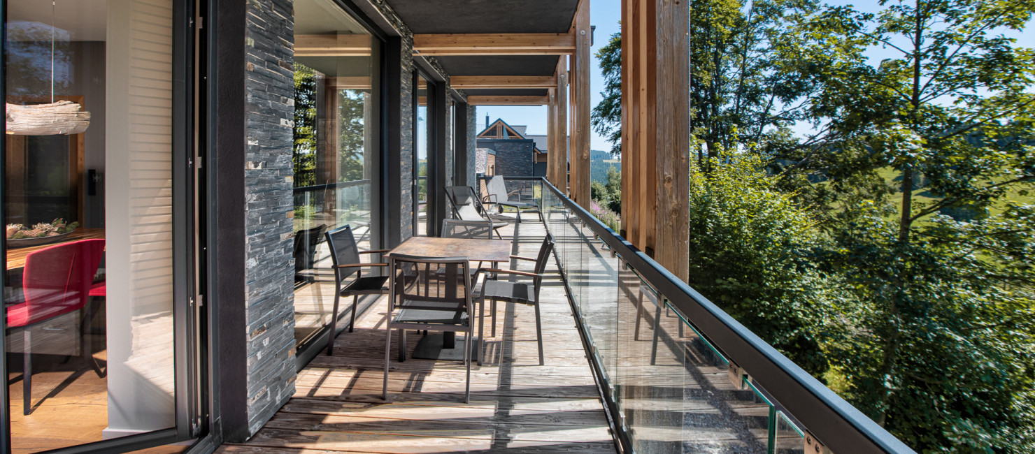 Die Black Forest Lodge als Teil der Gessler Collection entstand aus einer alten Klinik und dem Haus des Badischen Turner-Bundes am Südhang des Feldbergs. (zur Gessler-Collection gehören die Black Forest Lodge, das Hotel Schloss Reinach in Freiburg und das Hotel Stadt Lörrach). Knapp 9 Millionen Euro investierte Hotelier-Familie Gessler in den Umbau der traumhaft gelegenen Immobilien. Es entstanden 28 lichtdurchflutete Ferienwohnungen im Schwarzwald für jeweils 1 bis 9 Personen. Jede Wohnung verfügt über eine voll ausgestattete Küche. Die Gastbereiche umfassen einen Entspannungsbereich mit Infinity-Pool, Sauna und Schwalldusche, einen Fitnessraum, eine kleine Hausbibliothek, einen Skiraum mit Skischuhtrockner-Wand, einen Fahrradabstellraum sowie zwei Waschräume mit Waschmaschinen, Trocknern, Bügeleisen und -brettern. Parkplätze und Einzelgaragen sind ebenfalls vorhanden. Die Black Forest Lodge beeindruckt nicht zuletzt durch ihre außergewöhnliche Lage: Traumhafte Aussichten über die umliegenden Wälder und Täler, sofort sind Sie an der frischen Luft und können die grenzenlose Natur genießen. Natur und Nachhaltigkeit standen auch im Fokus des Baukonzepts, das vom Oberrieder Architekten Wolfgang Schweizer stammt. Natürliche Materialien aus der Region, energieeffiziente Bauart und eine ökologisch sinnvolle Einbettung in die Umwelt standen beim Umbau im Mittelpunkt. Entsprechend vereint die Black Forest Lodge heimische Hölzer, Stein und vor allem viel Glas, das zur grandiosen Fernsicht einlädt. Die Black Forest Lodge – unser kleiner Beitrag, um den Schwarzwald als eine der wichtigsten Ferienregionen in Deutschland zu stärken; und der Beweis, dass außergewöhnlicher Urlaub auch ohne lange Flugreise möglich ist.