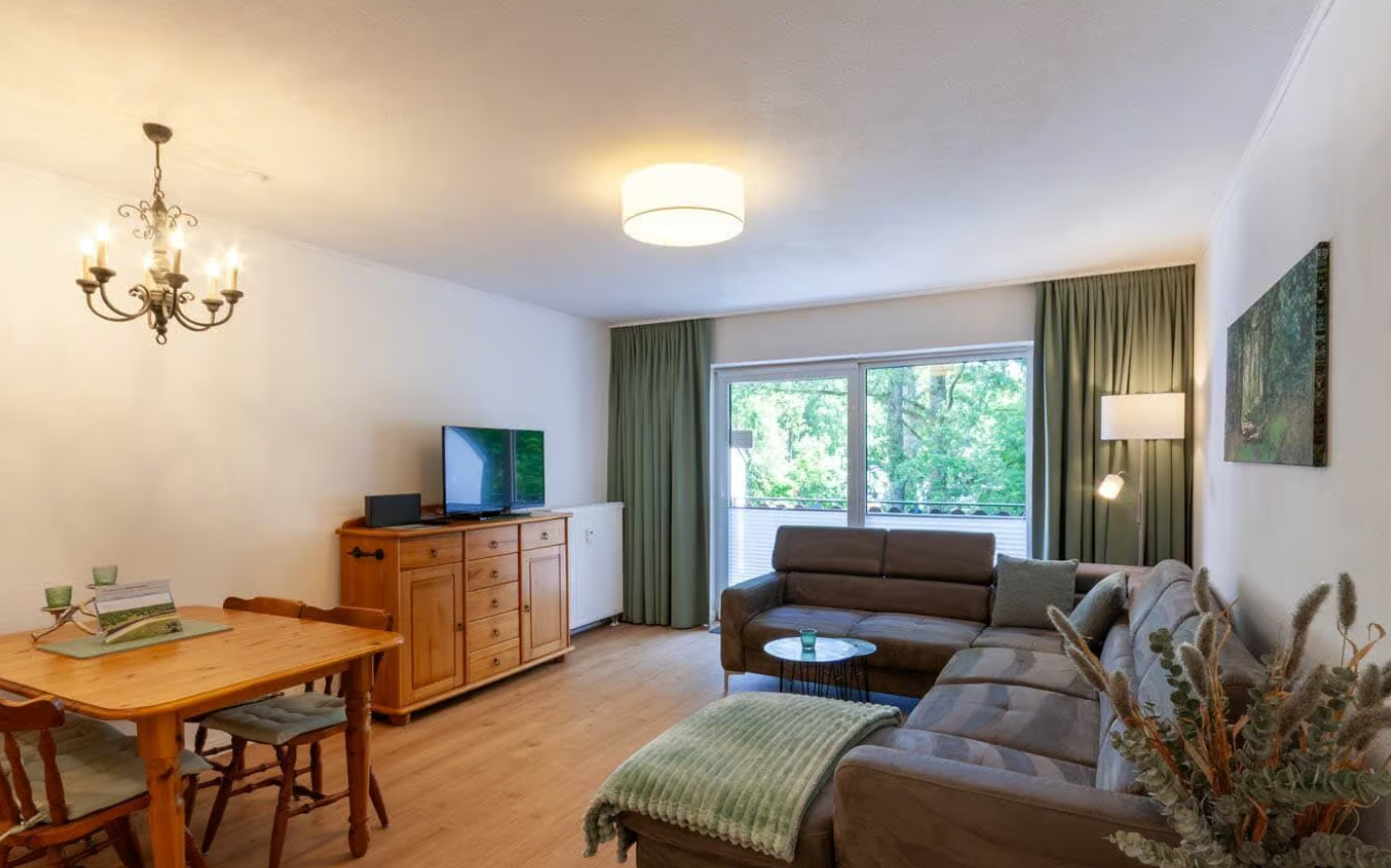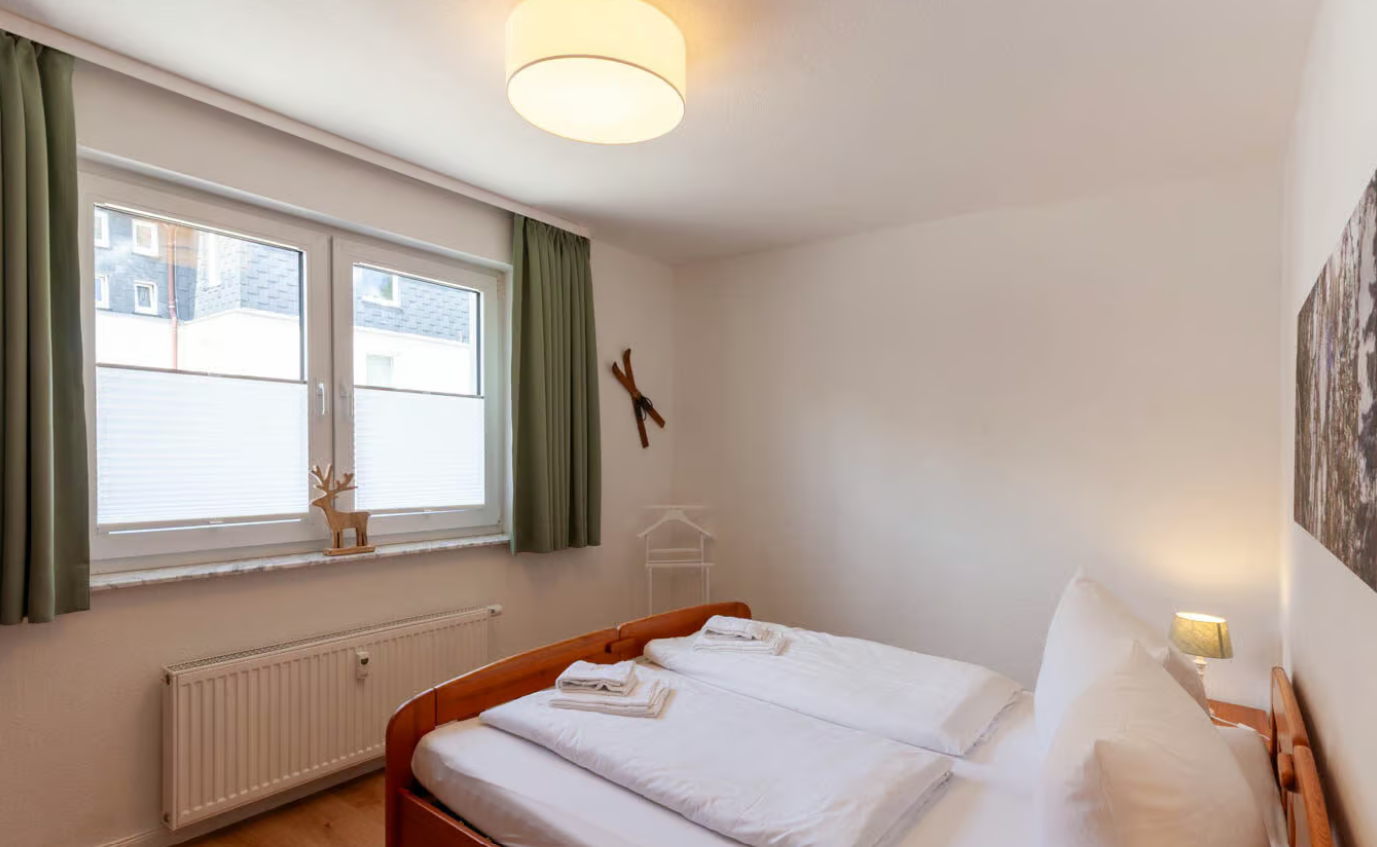 Die Wohnung verfügt über ein komfortables Schlafzimmer sowie ein großzügiges Wohn-/Schlafzimmer, das mit einer Schlafcouch, einem TV und einer offenen, gut ausgestatteten Küche ausgestattet ist. So können Gäste nach einem aktiven Tag in der Natur entspannt kochen oder sich einfach auf der Couch zurücklehnen und den Abend genießen. Das separate Badezimmer sorgt für zusätzliche Privatsphäre und Komfort. Vom Wohnbereich aus gelangen Sie auf den Balkon, der mit Sommermöbeln ausgestattet ist und einen direkt Blick auf die Talstation der Wurmbergseilbahn bietet – ideal für eine Tasse Kaffee am Morgen oder ein Glas Wein am Abend.