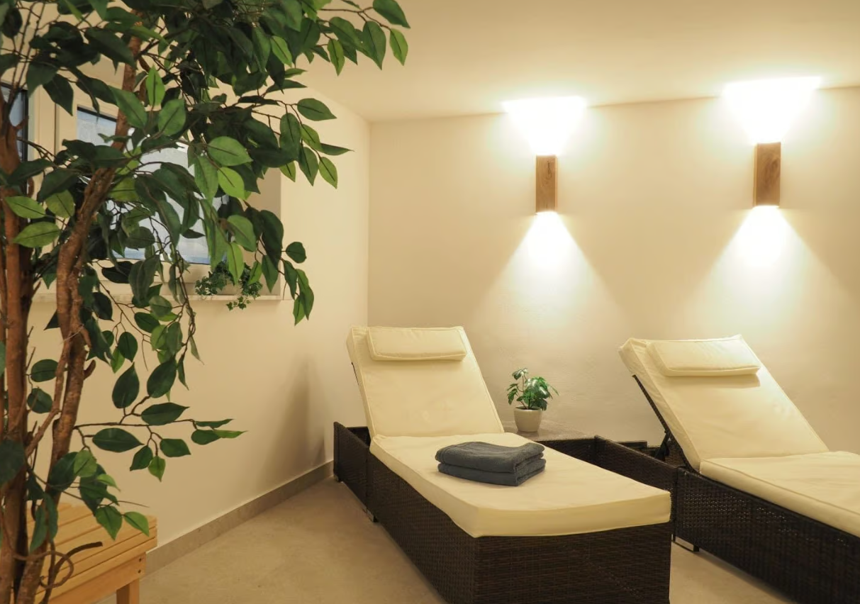 Für zusätzliche Entspannung sorgt die Sauna im Haus, die gegen Gebühr genutzt werden kann. Die Sauna mit Münzautomat (Euro) steht nach vorheriger Reservierung zur alleinigen Nutzung zur Verfügung. Die Reservierung erfolgt, eigenständig durch die Gäste, mittels eines Kalenders im Saunabereich.