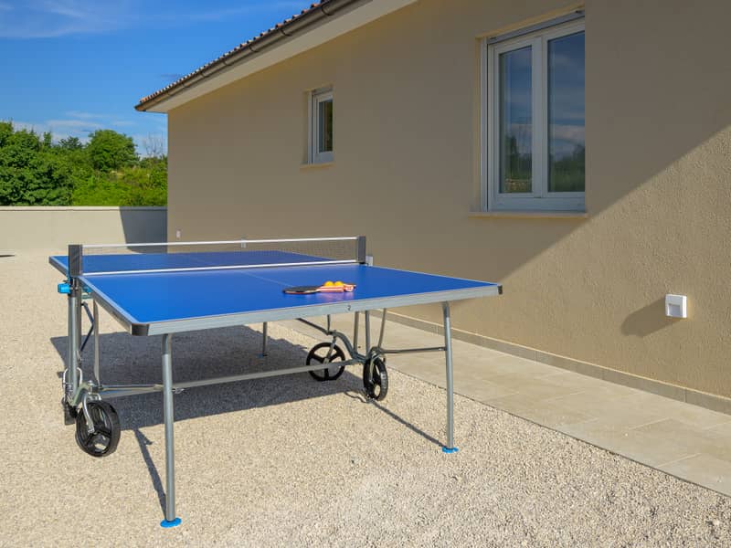 Die Villa verfügt über drei geräumige Schlafzimmer, jedes mit eigenem Bad, was vollständige Privatsphäre und Komfort für alle Gäste gewährleistet. Der große, gepflegte Garten mit einem schön angelegten Rasen ist ein idealer Ort zum Entspannen, geselligen Beisammensein und Spaß mit Familie und Freunden. Den Gästen stehen eine Liegewiese, ein Spielplatz für Kinder sowie ein Außen-Essbereich mit Fernseher und Eiswürfelbereiter zur Verfügung, die an warmen Sommertagen zusätzlichen Komfort bieten.